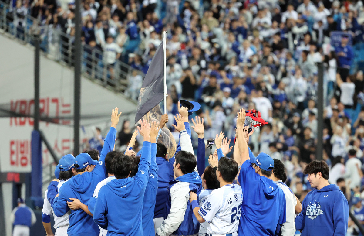 삼성 선수단이 지난 14일 대구 SSG전에서 준플레이오프 최종 승리를 확정한 후, 세리머니를 펼치고 있다. 사진=뉴시스 ◆목표 포착한 독수리의 발톱