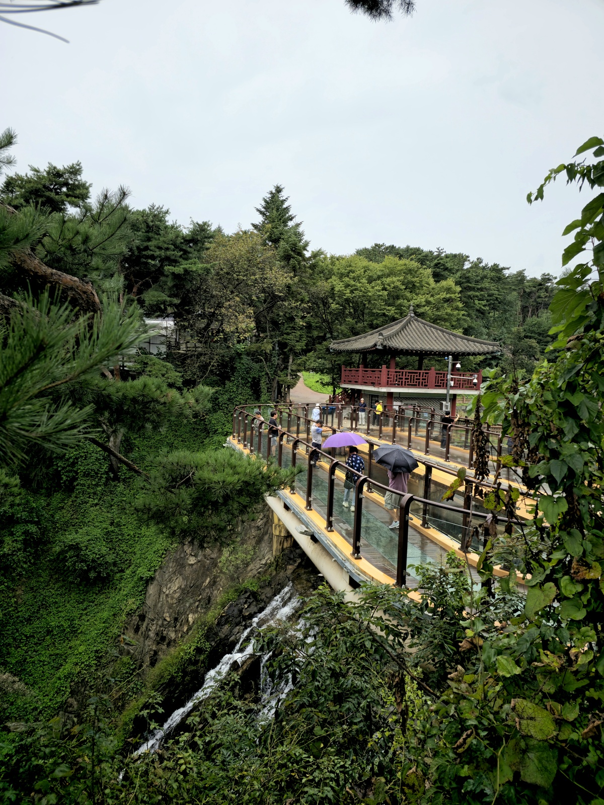 의림지 역사박물관. 의림지권 투어는 제천10경 중 제1경인 의림지 등도 만날 수 있다는 점이 큰 매력이다. 의림지는 정확한 축조 시기는 알 수 없지만, 신라 진흥왕(540~575) 때 악성 우륵이 용두산에 서서 흘러내리는 개울물을 막아 둑을 만든 것이 이 못의 시초라 전해진다. 용추폭포 유리전망대에 서자 발아래로 장쾌하게 쏟아져 내리는 물줄기가 간담을 서늘하게 만든다. 의림지역사박물관에서는 축조 과정 등을 엿볼 수 있다. 소나무 691그루와 작은 개울이 어우러지는 의림지 솔밭공원도 걸어 보기를. 제2의림지 비룡담 저수지까지 이어지는 솔밭공원으로 들어서면 향긋한 솔향이 나른한 오후를 일깨우며 기분을 상쾌하게 만들어 준다. 제천=글·사진 최현태 선임기자 htchoi@segye.com