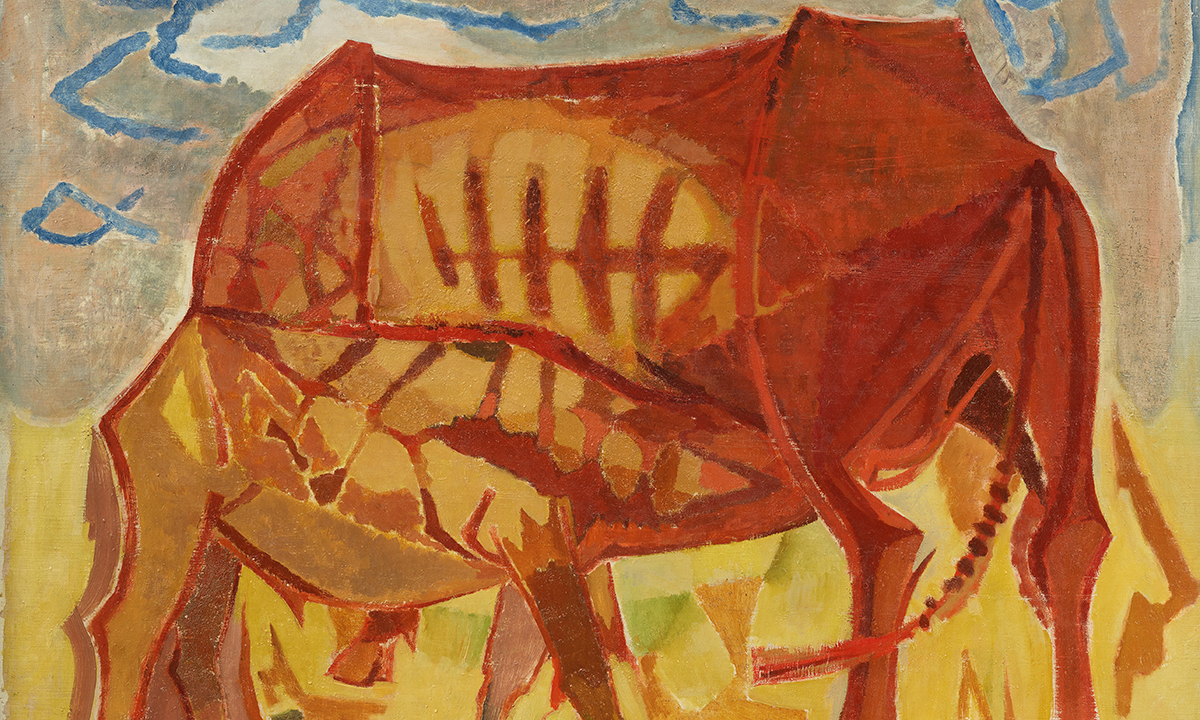 문신, ‘소’(1957). 1958년 제4회 모던아트협회전에 출품된 것으로 추정되는 작품으로, 조각적 무게감과 안정감을 유지한다. 국립현대미술관 청주에서 열리는 ‘조우(遭遇), 모던아트협회 1957-1960’은 그 짧고도 치열했던 시간들을 다시 불러낸다. 질서와 해체가 교차하던 시대 이들의 조우는 반세기가 지난 오늘에도 예술이 어떻게 시대와 마주해야 하는가를 묻는다. 전시는 협회에 참여한 작가 11명의 작품 156점과 아카이브 30점을 통해 전쟁 직후의 궁핍한 현실과 재건의 긴장 속에서 1세대 모더니스트들의 노력을 조명한다. 전시는 총 3부로 구성됐다. 1부에서는 작가들이 모던아트협회를 결성하기 전의 작업을 돌아본다. 이들은 피난의 궁핍한 생활 속에서도 ‘하꼬방’을 아틀리에로 개조해 화업을 이어갔다. “좁디 좁은 대지에 여러 식구들이 살아야겠고, 일하는 방도 있어야겠다는 한 끝 부푸르기만 하는 욕심은 위로 자라서 결국은 명색 삼층을 짓고 말았다. … 이것이 두 팔 가량 되는 나의 피난 화방이다. ”(한묵) 좁은 방에서도 그리기를 멈추지 않은 작가들의 삶과 예술에의 의지를 엿볼 수 있다.