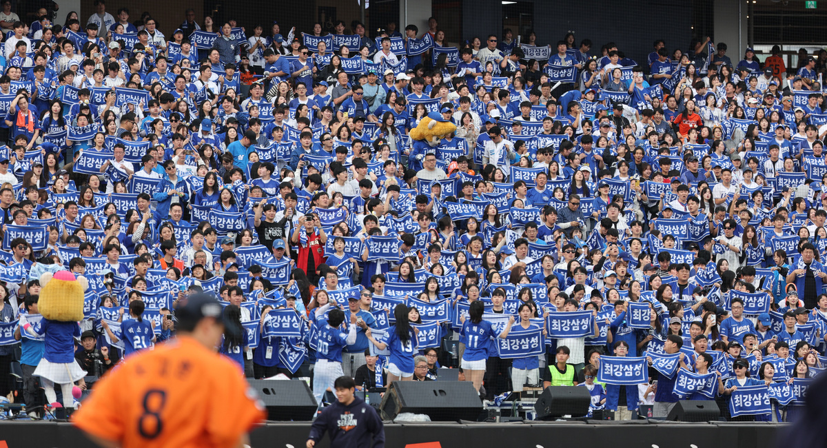어김없이 관중석이 꽉 들어찼다. 1만6751개의 좌석이 빼곡하게 채워졌다. 올해 누적 PS 관중 수는 23만7330명까지 늘어났다(11경기). 2023년 KS 1차전부터 무려 32경기 연속 매진 행진을 이어가고 있다. PO로 범위를 좁히면 지난해 1차전 이후 9경기 연속 매진이다.