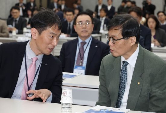 지난 4월 서울 중구 은행회관에서 이창용 한국은행 총재, 김병환 전 금융위원장, 이복현 전 금융감독원장이 공개 토론을 열었다.