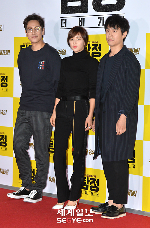 배우 최강희(가운데)가 이선균, 오정세와 지난 2015년 9월 16일 오 서울 성동구 왕십리 CGV에서 진행된 영화 '탐정:더 비기닝' VIP 시사회에 참석해 포즈를 취하고 있다. 한윤종 기자 두 사람은 2008년 방송된 SBS 드라마 '달콤한 나의 도시'와 2010년 영화 '쩨쩨한 로맨스'에서 두 차례 호흡을 맞춘 바 있다. 이후 2019년에 이선균이 최강희가 출연하는 SBS 드라마 '굿캐스팅' 촬영장에 커피차를 선물하며 친분을 과시했다.