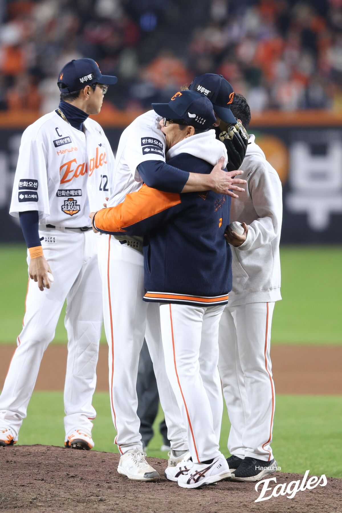 사진=한화이글스 제공 큰 경기에서도 남다른 존재감을 자랑했다. 삼성과의 플레이오프(PO·5전3선승제) 2차전서 고전(4이닝 5실점)했으나, 딱 거기까지였다. PO 5차전서 구원으로 나서 4이닝 1실점으로 막았다. 그리고 KS서 날아올랐다. 책임감과 헌신도 엿보였다. KS 4차전 당시 7회까지 이미 투구 수 100개를 넘긴 상태였지만 멈추지 않았다. 8회 아웃카운트 2개를 잡은 뒤엔 벤치를 향해 ‘더 던지겠다’는 사인을 보내기도 했다. 와이스는 “8회를 (내 손으로) 막고 싶었다”고 밝혔다.