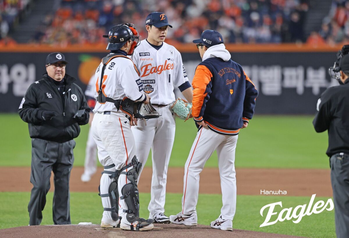 4일 휴식 후 출격. 피로가 풀리지 않은 탓일까. 1이닝 만에 교체됐다. 신민재, 김현수에게 연거푸 장타(2루타)를 맞으며 선취점을 내줬다. 문보경에게도 볼넷을 내줬다. 정상 컨디션이 아닌 듯했다. 기본적으로 구속이 뚝 떨어졌다. 직구 최고 구속이 150㎞에 그쳤다. 삼성과의 플레이오프(PO) 1차전만 하더라도 161.6㎞까지 찍혔다. 올 시즌 KBO리그 최고 구속이었다. 불펜이었다는 점을 감안해도 차이가 꽤 크다. 한화 관계자는 “특이사항 없다”고 설명했다.