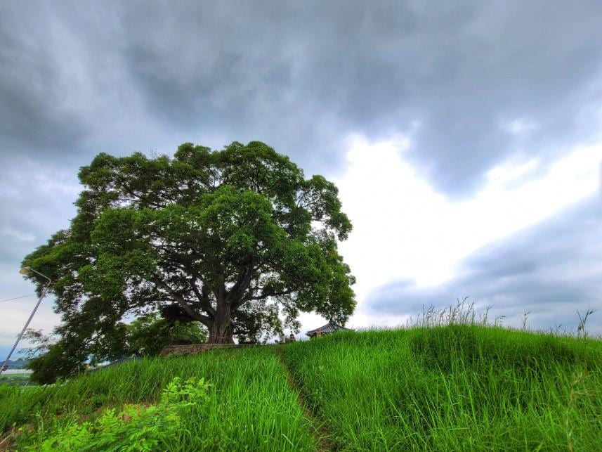 창원 북부리에 위치한 팽나무. 2022년 천연기념물로 지정된 곳으로 드라마 촬영지로도 알려져 있다. 기후에너지환경부 제공 이중 창원 북부리 팽나무는 무형유산인 마을 당제와 자연유산인 팽나무가 복합적으로 결합된 국가유산(2022년 천연기념물 지정)이다. 북부리 언덕 위에서 마을의 수호신처럼 자리를 지켜온 팽나무는 수령 약 500년의 아름드리 당산나무로 생태적?경관적?문화적 가치가 크다. 팽나무가 있는 지역은 드라마 ‘이상한 변호사 우영우’의 촬영지로도 알려져 있다.