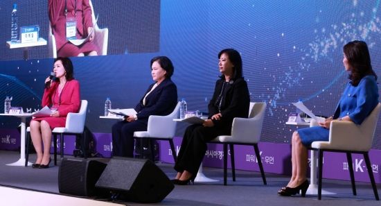 박현남 도이치은행 한국대표는 10년 전 여성리더스포럼에 이어 오늘 다시 연단에 선 것에 무거운 책임감을 느낀다며 입을 뗐다. 그는 성별 조화를 잘 이뤄낼 '스피처 컬처' 구축을 중요한 사회 과제로 꼽았다. 박 대표는 "성별 차이 등이 조화를 이뤄내는 사회적 토대를 이뤄내는 것이 리더십의 핵심 역할"이라며 "스피커 컬처가 잘 이뤄지는 문화를 만드는 게 중요하다. 눈치 보고 자기 의견 내는 게 아니라 주니어도, 여성도, 자유롭게 자기 의견을 낼 수 있는 스피커 컬처가 경영 성공의 척도"라고 강조했다.