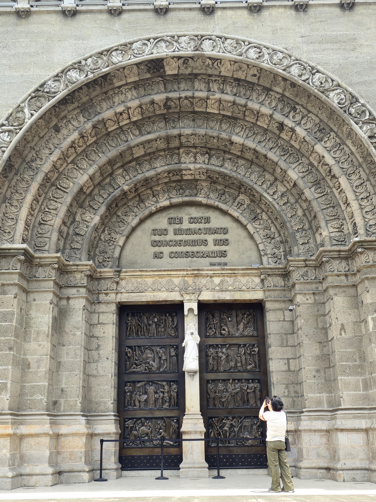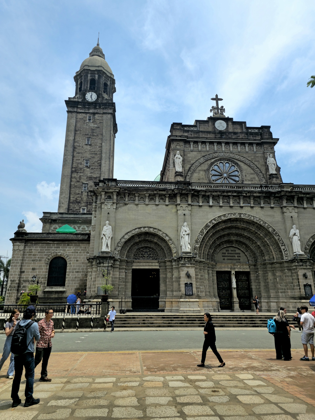 마닐라 대성당 정면 파사드. 산 아구스틴 교회가 갖은 고난을 꿋꿋하게 버텼다면 마닐라 대성당은 파괴됐다가 한자리에서 8차례나 부활한 건물로 유명하다. 1581년 무렵 완공된 대성당은 400년이 넘는 시간 동안 지진, 화재, 전쟁으로 수차례 파괴됐다. 특히 2차 세계대전 때인 1945년 마닐라 전투 때는 전면 붕괴됐지만 1958년 현재의 모습으로 재건됐다. 130여개의 스테인드글라스, 5685개 파이프로 이뤄진 대형 파이프 오르간이 볼거리다.