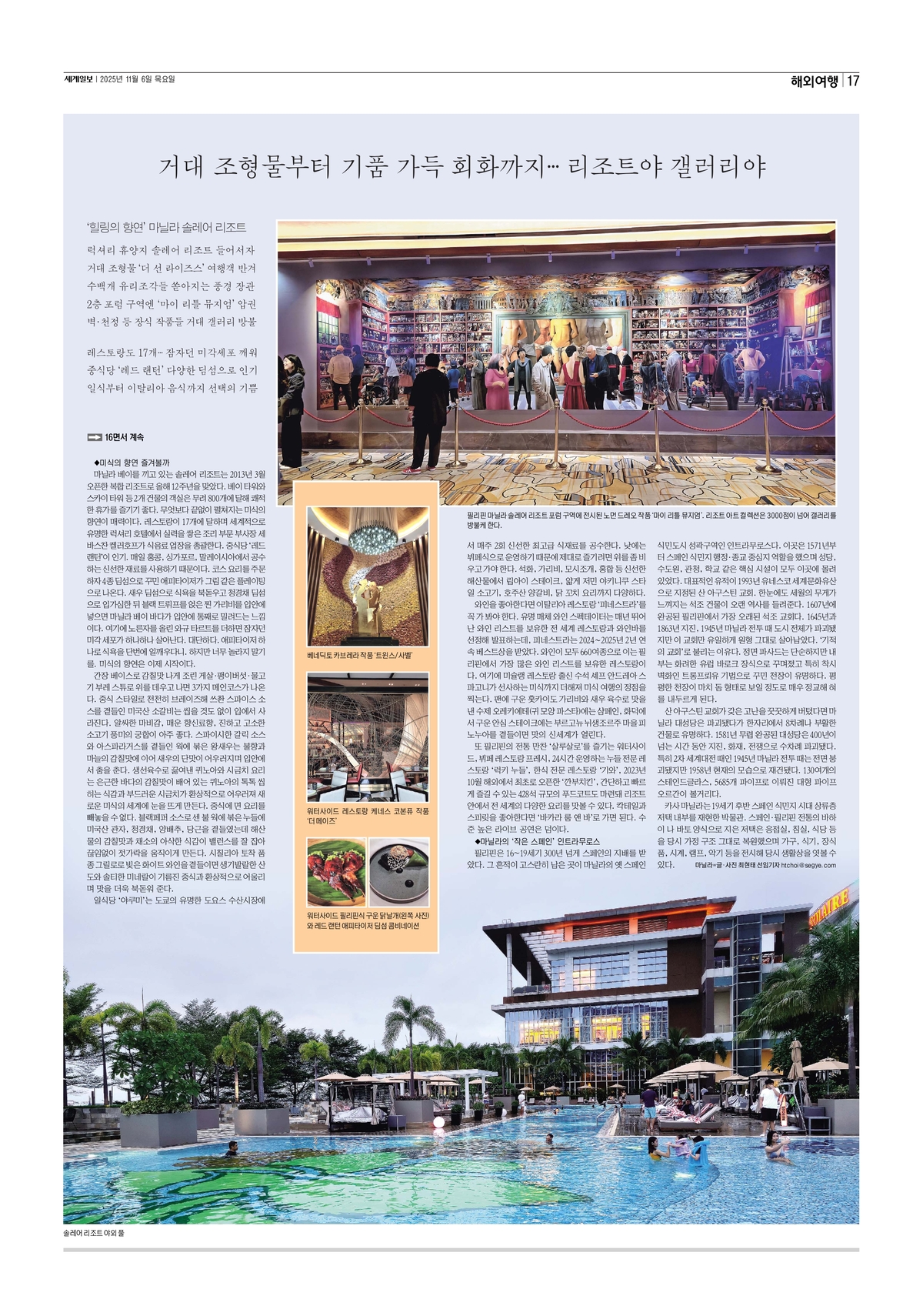 포브스 트래블 가이드 선정 5성급 리조트 9년 연속 이름 올려/아트 컬렉션 무려 3000점 미술관 방불/17개 레스토랑서 전 세계 미식 즐겨/이탈리아 레스토랑 ‘피네스트라’ 와인 660종 보유 와인 스펙테이터 2년 연속 ‘베스트상’ 받아