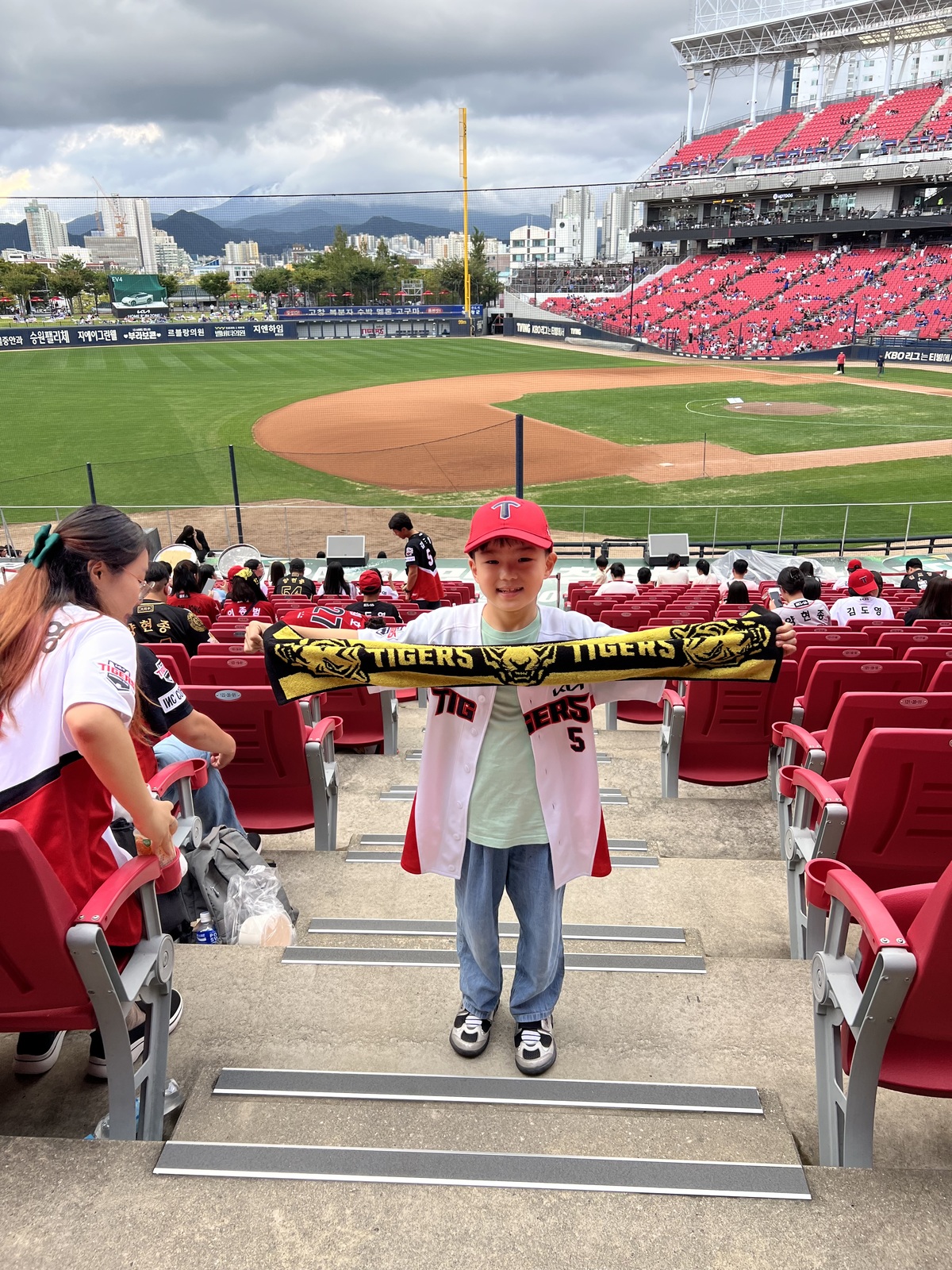 KIA 팬 임지한 군. 사진=본인 제공 출범 원년에 태어난 KIA 팬 임상우 씨는 요즘 아내 한희진 씨, 아들 임지한 군과 야구장에 다니는 게 취미다. 성남시에 거주하지만 기차를 타고 광주까지 내려가 직관하고 돌아온다. 임 씨에게 중학교 시절 갔던 야구장과 지금 다니는 야구장을 비교해달라고 하자 “격세지감”이라며 껄껄 웃었다. 임 씨는 “돈이 없던 학생이라 경기 끝날 때를 노렸다. 7회말쯤엔 공짜로 들어갈 수 있었다. 그 시간만 기다렸다가 경기장에 들어갔다”면서 “당시 야구장은 위험했다. 파울볼이 뜬지도 모르고 가만히 있었는데, 공이 날아와 맞았다. 다행히 심하게 다치진 않았지만, 아무도 나에게 관심이 없었다. 요즘은 안내방송도 나오고 안전요원이 달려오신다”고 설명했다.