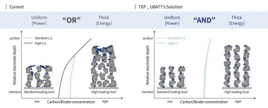 전극은 활물질, 도전재, 바인더를 유기 용매에 넣고 섞은 뒤 집전체(알루미늄 포일·구리 포일)에 코팅한 후 건조하는 방식으로 만들어진다. 이때 전극이 너무 두꺼우면 건조 과정에서 무거운 활물질은 가라앉고 상대적으로 가벼운 도전재, 바인더는 위로 뜨는 마이그레이션(층분리) 현상이 발생한다. 이는 전자의 흐름을 방해해 배터리의 성능을 떨어뜨리게 된다.