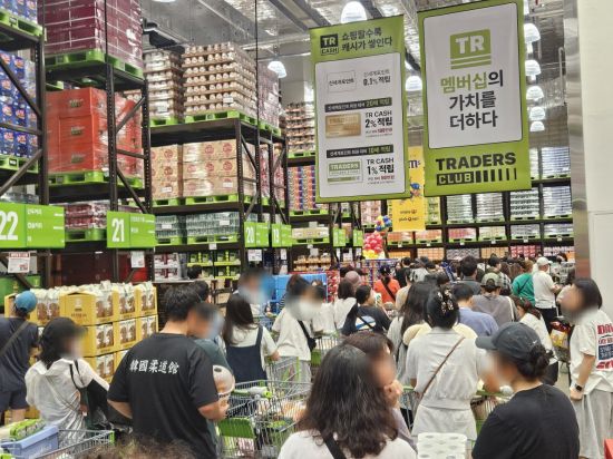 5일 오전 인천 남동구 구월동 트레이더스 구월점 앞. 거대한 크기를 자랑하는 초록색 창고형 건물 앞에 입장을 기다리는 줄이 끝도 없이 이어졌다. 건물 밖 도로는 트레이더스로 향하는 자동차로 가득 차 교통 정체가 발생했고, 역대급 인파에 매장 인근의 한 카페는 이른 아침부터 재료가 동나 일부 제품 판매를 중단했다.
