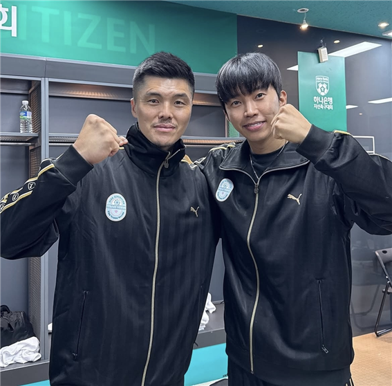 하나은행 자선축구대회’에 참여한 김영광과 임영웅. 김영광 SNS 두 사람은 작년 10월 ‘하나은행 자선축구대회’에 같이 참여했다. 당시 임영웅과 함께 찍은 사진에 ‘정말 뜻깊고 행복했던 하루’라는 문구를 추가해 자신의 사회관계망서비스(SNS)에 업로드했다. 오세영 온라인 뉴스 기자 comeon@segye.com