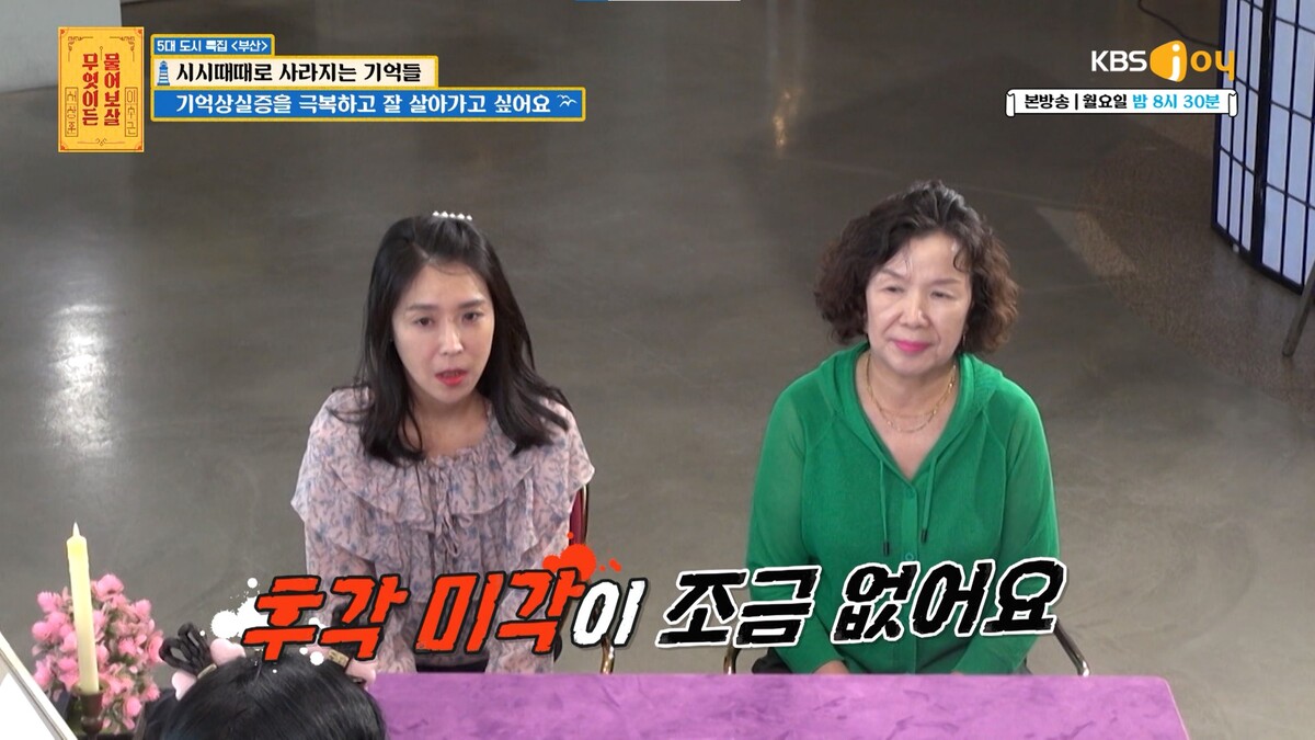 원인 모를 기억상실증에 감각 이상을 겪고 있는 사연자가 자신의 이야기를 전했다. KBS JOY '무엇이든 물어보살' 제공 지난 17일 방송된 KBS Joy ‘무엇이든 찾아가 보살’ 부산편 341회에는 기억상실증을 앓고 있다는 여성과 그 어머니가 출연해 이야기를 전했다. 사연자는 5년 전 퇴사 후 전국 여행을 다녀온 직후 갑작스러운 발열로 입원했으며, 이후 원인 불명의 후유증으로 기억상실 증세를 겪기 시작했다고 밝혔다.