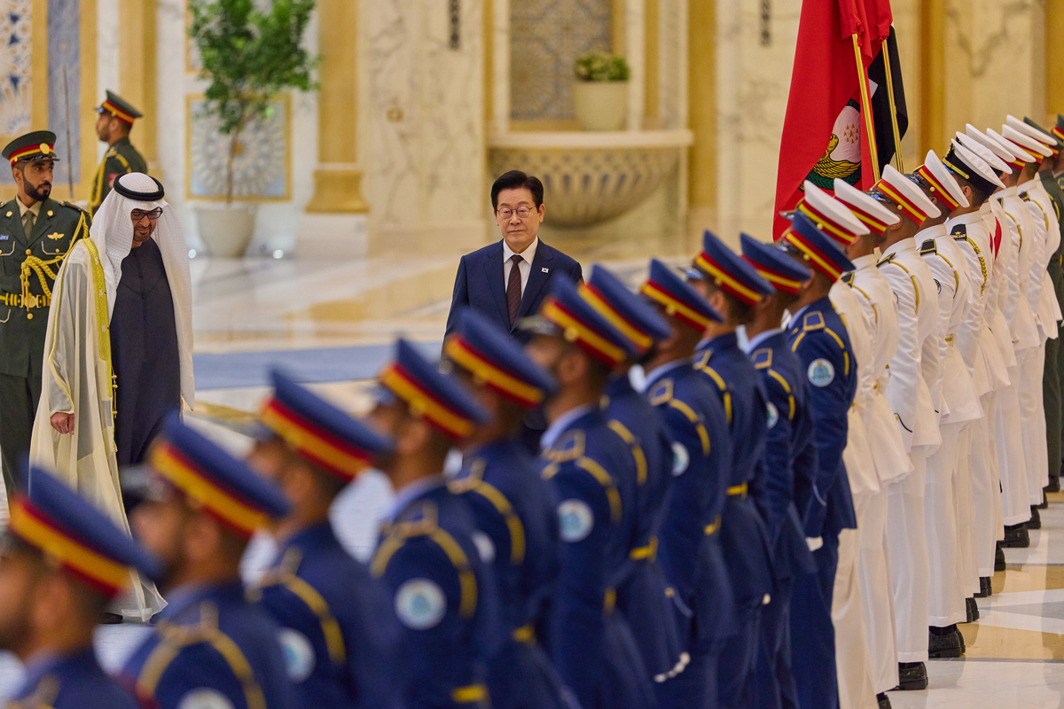아랍에미리트(UAE)를 국빈 방문 중인 이재명 대통령이 18일(현지 시간) 아부다비 카사르 알 와탄 대통령궁에서 열린 공식 환영식에서 무함마드 빈 자이드 알 나흐얀 UAE 대통령과 의장대를 사열하고 있다. 대통령실 제공 이 대통령은 또 “양국 관계의 또 다른 자양분은 바로 ‘문화’”라며 “한국과 이집트 국민이 서로에 대해 갖는 호감과 친근함은 양국 관계의 자양분이자 모든 협력의 가장 튼튼한 기초”라고 말했다. 이어 “이집트는 예로부터 아랍 문화의 중심지이며 범람하는 나일강처럼 예술이 넘쳐흐르는 공간이었다. 그런 이집트에서 이제 한국의 음악과 드라마를 소재로 이야기꽃을 피운다고 한다”면서 “K뷰티, K패션, K푸드가 유구한 역사와 문화를 가진 이집트를 사로잡았다는 점에 더욱 감개가 무량하다”고 밝혔다. 전날 이집트에 도착한 이 대통령은 이날 알시시 이집트 대통령과 만나 정상회담과 공식오찬 등을 함께 하며 양국 협력 확대 방안을 논의했다. 이 대통령은 오후에는 카이로대학교 연설을 통해 우리 정부의 대(對)중동 구상 등을 언급했다. 이 대통령은 저녁에는 재외동포 간담회를 열고 이집트에 거주 중인 우리 교민을 만났다. 이 대통령은 21일 이집트를 떠나 주요 20개국(G20) 정상회의가 열리는 남아프리카공화국 요하네스버그로 이동할 예정이다.