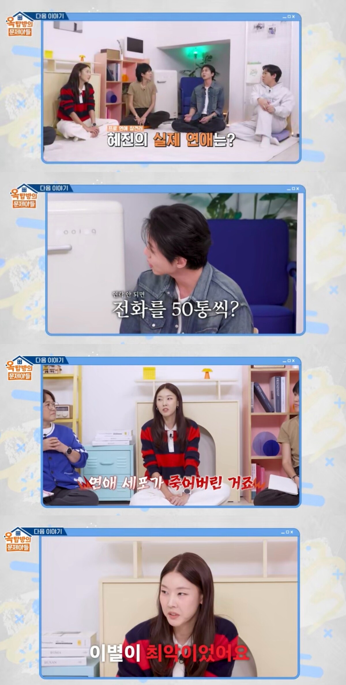 주우재는 “혜진 누나는 연락이 안 되면 전화를 50통씩 한다”고 폭로하며 한혜진의 연애 스타일을 언급했다. 이에 한혜진은 “완전히 연애세포가 죽어버렸다. 이별이 최악이었다. 술 마시다가 한 사람이 울기 시작한다”며 웃픈 과거 연애사를 털어놨다.