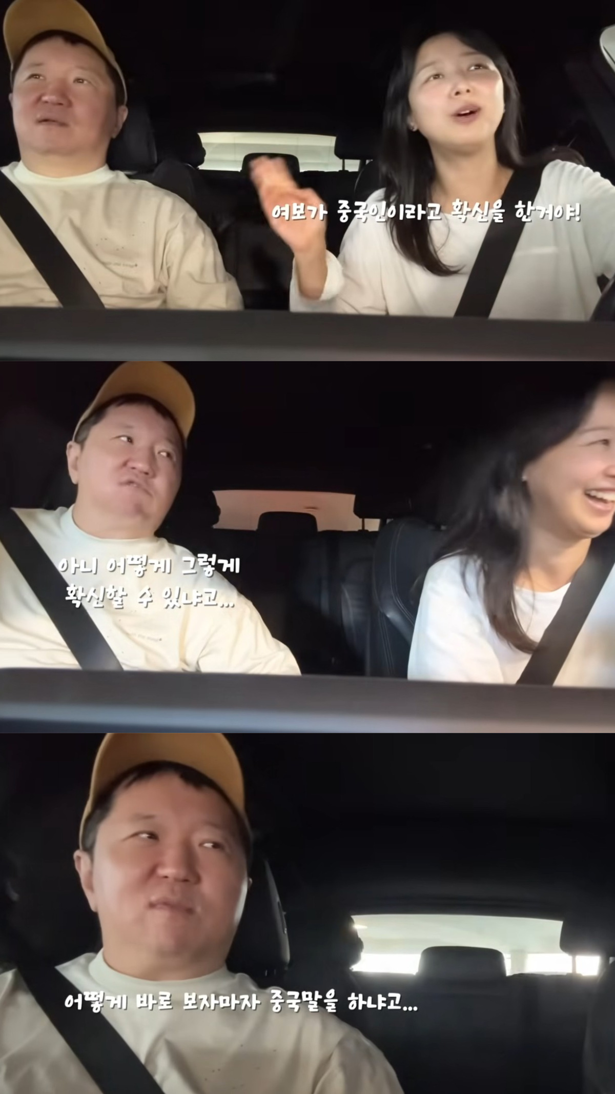 정형돈의 아내는 “갑자기 우리를 보자마자 엄청 밝아져서. 나는 처음엔 여보 알아본 줄 알고 모른척하고 가려고 하고 있는데 갑자기 냅다 중국말로 대화 시전을 하더라”고 말했다.