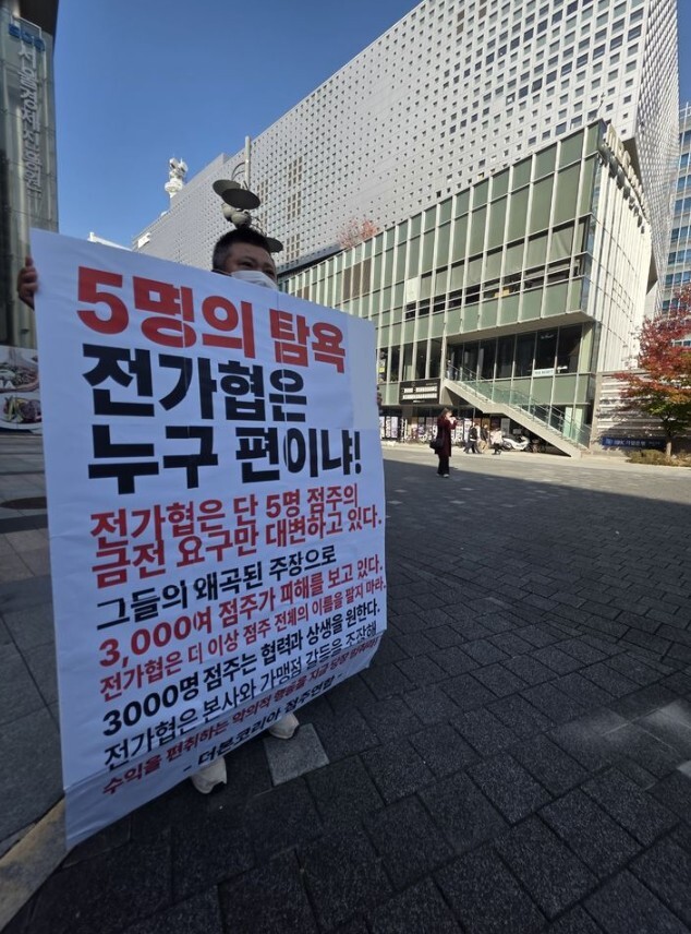 지난 11일, "백종원의 방송 복귀를 철회해달라"는 주장을 하는 전국가맹점주협의회의 주장에 대해 더본코리아 점주협의회가 반박하는 시위를 벌이고 있다. 뉴시스 한편, MBC가 ‘남극의 셰프’ 방송 강행을 알리자 연돈볼카츠가맹점주협의회·대한가맹거래사협회·참여연대 등 더본코리아 브랜드 내 일부 가맹점주들이 전국가맹점주협의회와 함께 지난 11일 서울 마포구 MBC 사옥 앞에서 기자회견을 열고 “백종원 더본코리아 대표의 방송 복귀를 철회해달라”고 요구한 바 있다. 이에 맞서 더본코리아 점주협의회 역시 “소수 점주의 왜곡된 주장으로 3000여명의 점주가 피해를 보고 있다”면서 맞불 시위를 벌이는 등 갈등이 격화되는 양상을 보였다.