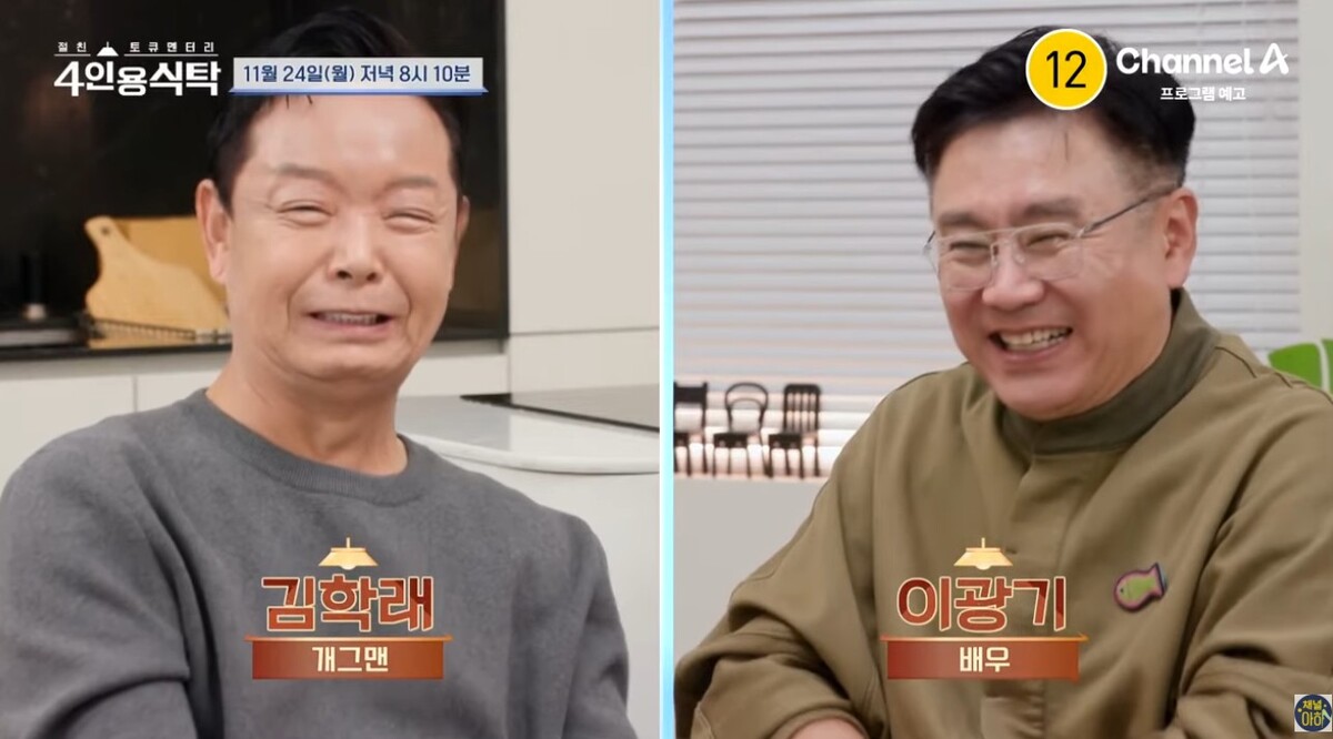 김재원의 절친 김학래와 이광기. 유튜브 채널 '채널아하: 채널A Health & Asset' 영상 캡처 이날 방송에서는 KBS에서 30년 6개월간 재직 후 퇴사한 지 3개월 차인 프리 아나운서 김재원이 ‘아침마당’을 함께 하며 퇴사 전부터 고민을 털어놓은 절친 코미디언 김학래와 배우 이광기를 초대했다. ‘아침마당’ 최장수 패널이었던 김학래는 하차 후, 자신의 후임으로 온 이광기에게 “내 자리를 가져갔다”고 농담 섞인 불만을 토로하고, 이에 김재원도 “김학래가 한동안 삐쳐있었다”고 털어놓으며 두 사람의 미묘했던 관계가 드러나 웃음을 자아내기도 했다.