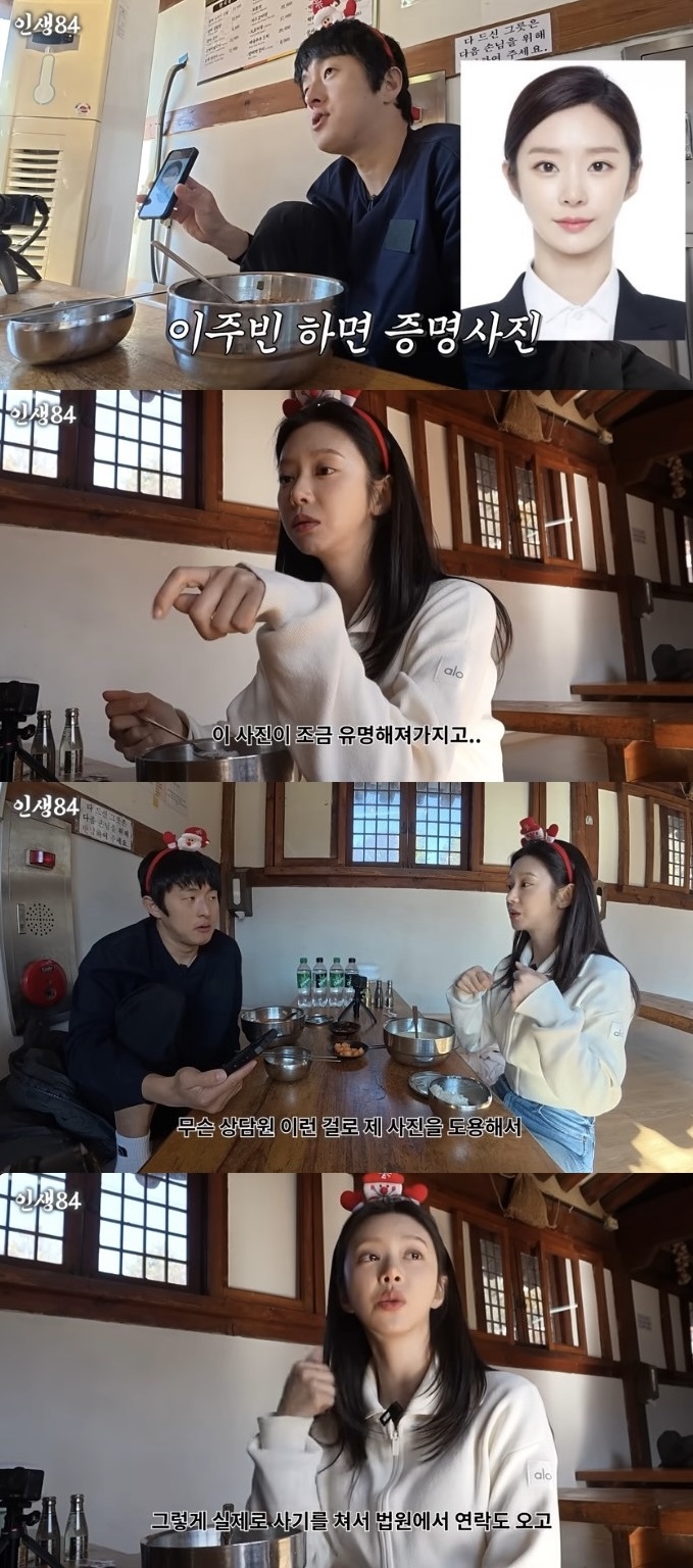 유튜브 채널 ‘인생84’ 캡처 이주빈은 “유명해져서 좋을 줄 알았다”고 말문을 연 뒤, 자신의 사진이 각종 범죄에 악용된 사실을 알게 됐다고 전했다. 상담원 프로필은 물론 보험·투자 권유, 중고차 판매 등 다양한 곳에서 도용됐다고 밝혔다.