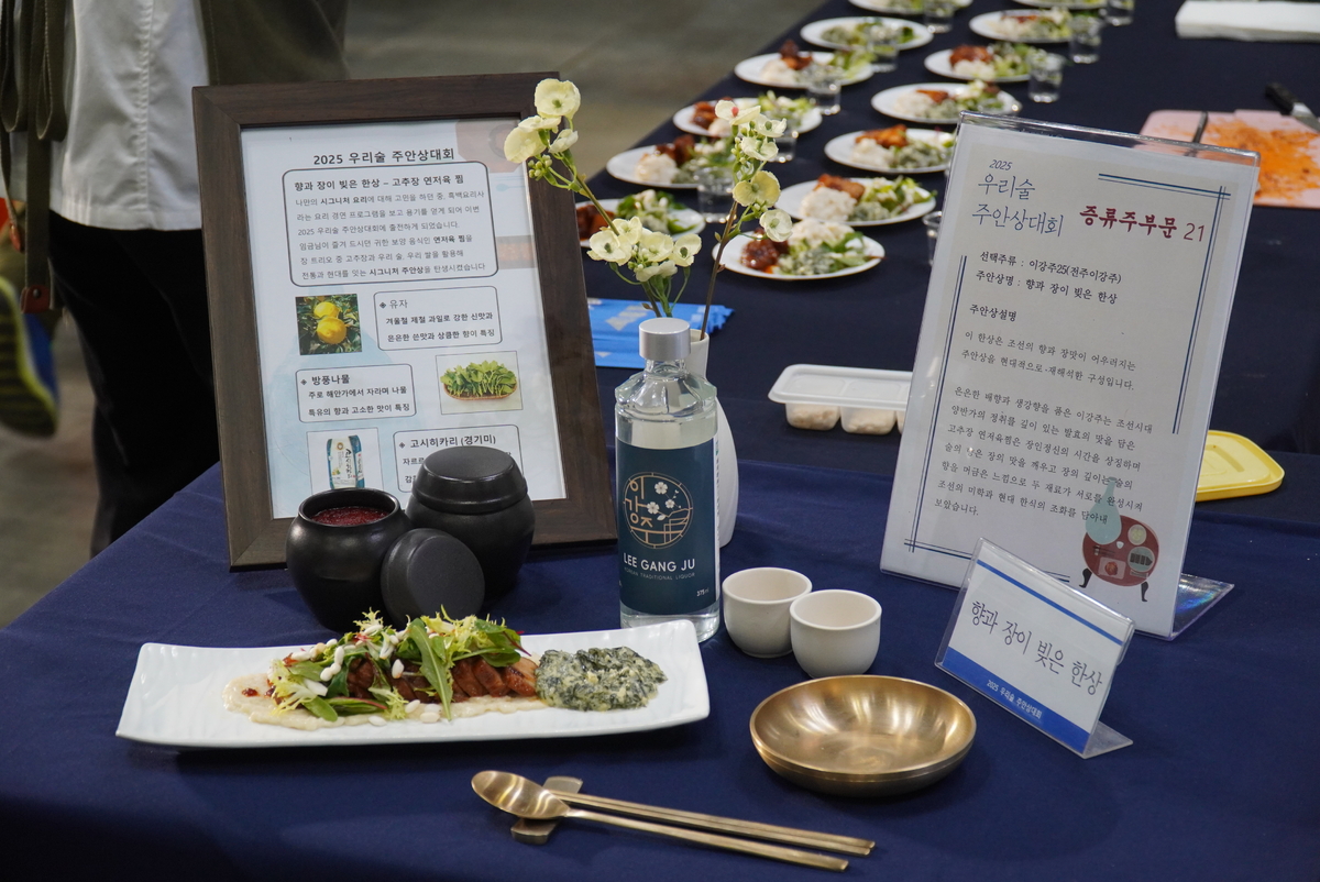 증류주 부분에서 대상을 받은 전주이강주의 ‘이강주25’. 대회를 주최·주관한 류인수 한국가양주연구소장은 “주안상은 단순한 술상이 아니라 한 나라의 음식문화가 담긴 상차림이며, 전통주는 한식과 만날 때 가장 큰 가치를 발휘한다”며 “이번 대회가 우리술을 일상 식문화와 세계 무대까지 확장시키는 출발점이 되기를 바란다”고 전했다. 한편 한국가양주연구소는 전통주와 음식이 결합하는 다양한 프로그램을 통해 한국 술의 대중화·세계화 기반을 강화할 계획이다.