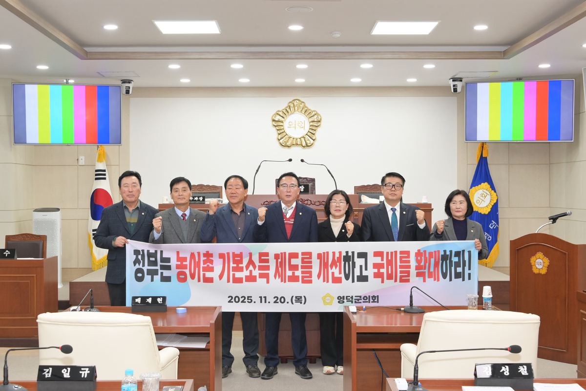 영덕군의회는 지난달 20일부터 이달 19일까지 30일간의 의사일정으로 제318회 제2차 정례회를 개회한 가운데 김성호 군의회 의장이 회의를 주재하고 있다. 영덕군의회 제공 세부 의사일정을 살펴보면 첫날인 20일은 개회식과 함께 제1차 본회의에서 김일규 의원이 대표 발의한 ‘농어촌 기본소득 제도 개선 및 국비 확대 촉구 건의안’과 신정희 의원이 대표 발의한 ‘지역사랑상품권 가맹점 등록 제한 완화 및 제도 개선 촉구 건의안’, 집행부가 제출한 ‘영덕군 골목형상점가 지정에 관한 조례안’, ‘2026년도 정기분 공유재산관리계획안’ 등 총 14건의 심의 안건을 처리했다. 특히, 이날 김일규 의원은 건의안 제안설명에서 “농어촌 주민의 삶의 질 향상과 지역경제 활성화를 위해 농어촌 기본소득 시범사업을 인구감소지역 전역으로 확대 추진하고, 국비 부담 비율을 높일 것”을 정부에 강력히 촉구했다.