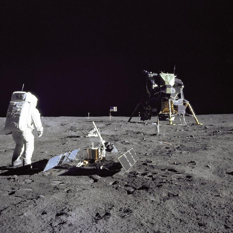 “(1969년) 7월19일 달 뒷면에 도착한 아폴로 11호는 로켓 역추진으로 감속해 달 주위를 도는 궤도에 진입했다. 7월20일, 닐 암스트롱과 버즈 올드린은 달 착륙선으로 이동했고 사령 및 기계선에서 분리된 달 착륙선은 30초 동안 역추진해 달 표면 14.5km 상공에 접근하는 타원 궤도에 진입했다. 달 가까이 접근했을 때 달 착륙선은 다시 756.3초 동안 역추진해 속도를 줄여 달 표면에 착륙했다. 착륙 6시간39분 후에 암스트롱은 달 착륙선에서 내려와 달 표면에 첫발을 디뎠고, 이 장면은 전 세계 6000만 명 이상의 사람들이 TV 생중계로 지켜봤다. 1960년대 안에 달에 사람을 보내겠다는 1961년 케네디의 선언이 실현되는 순간이었다. ”(105쪽)