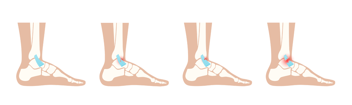 발목인대파열은 1도 염좌, 2도 염좌, 3도 염좌로 구분된다. 1도는 미세 파열로 가벼운 통증이 있고, 2도는 일부 파열로 붓기와 멍이 생기며 보행이 어렵다. 3도는 인대가 완전히 끊어진 상태로 심한 통증과 부종이 나타나 체중을 지지하기 어려워진다.