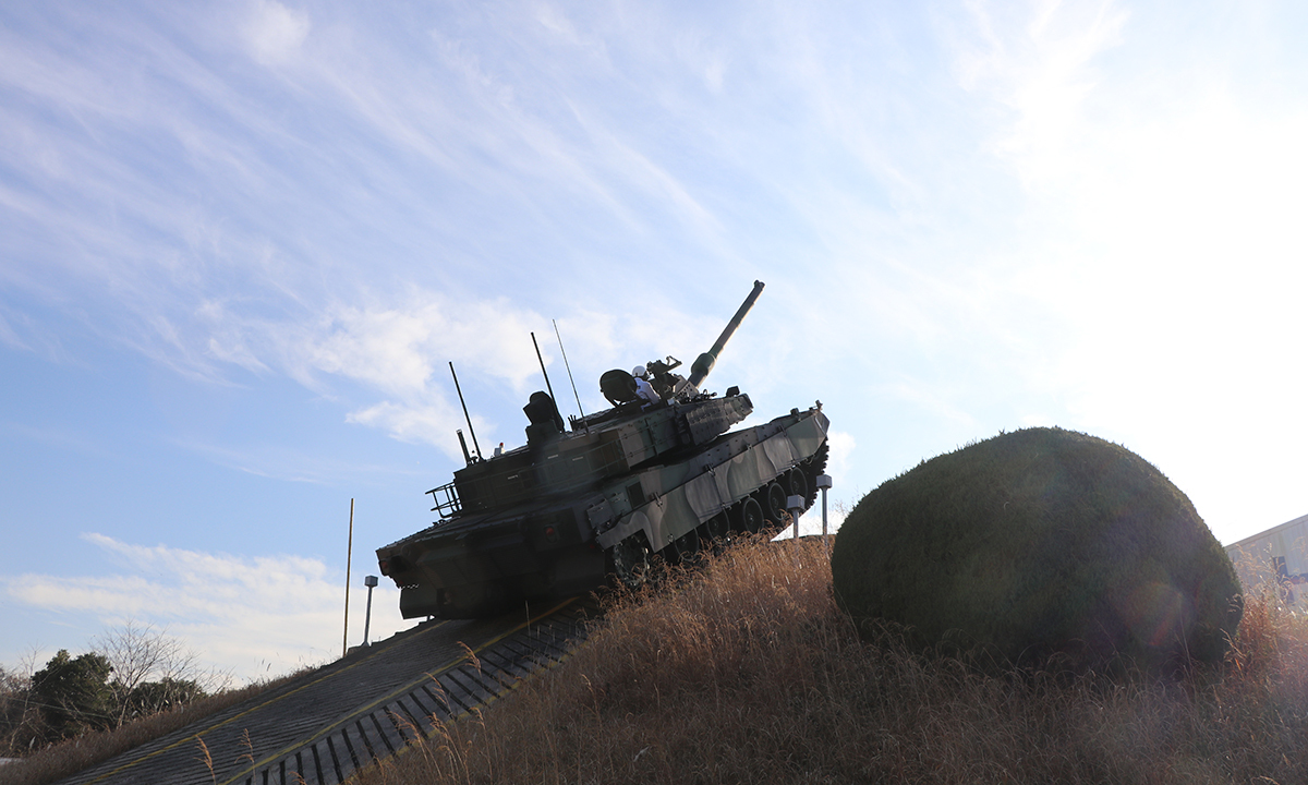 K-2 전차가 급경사를 올라가는 등판능력 시험을 하고 있다. 현대로템 제공 설계 단계부터 산악지형 운용을 감안한 전차가 필요한 대목이다. K-2는 능선·계곡 위주의 한반도 산악전을 고려해서 개발됐다.