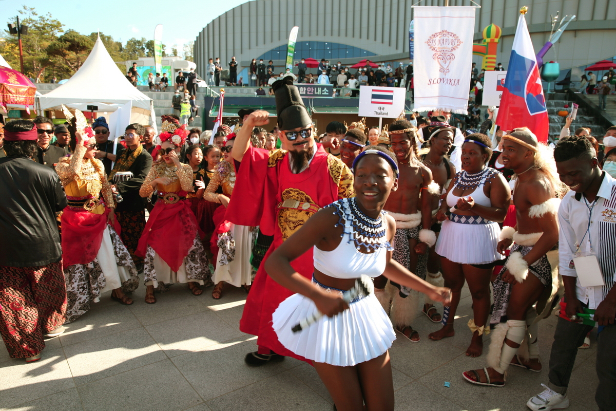 2024년 충북 영동난계국악축제에서 세계인이 함께 어우러졌다. 영동군 제공 이번 엑스포는 관람객 목표는 100만명이다. 4600여 대의 차량과 200여 대의 버스 등을 수용하는 주차장과 행사장 접근 편의를 위해 버스 4개 노선을 10~15분 간격으로 배치한다. 호텔과 농어촌민박, 휴양림, 템플스테이, 농촌체험마을 등을 숙소로 활용하고 인근 지역 숙박업소도 안내해 수용에 차질 없게 할 방침이다. 수유실, 물품대여소, 쉼터 등 편의시설과 곳곳에 안전센터를 운영한다. 영동군 관계자는 “2025 영동세계국악엑스포는 국악의 전통을 지키면서 현대적 가치와 산업적 가능성을 제시하는 무대”라며 “세계 관람객에게 국악의 매력과 우리 문화의 힘을 보여 줄 것”이라고 말했다.