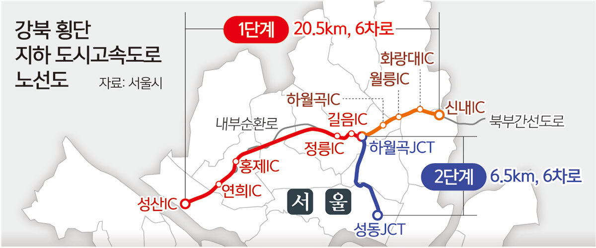 서울시가 총 사업비 4조6000억원 규모의 ‘강북횡단 지하도시고속도로’를 건설하기로 결정한 데에는 내부순환로와 북부간선도로의 만성적인 정체로 인해 강북 지역 발전이 더디게 진행되고 있다는 판단이 작용했다는 분석이다. 시는 지하도시고속도로 건설이 간선도로 기능 강화뿐 아니라 강북 지역의 도시공간 재편 역할을 하면서 ‘강북 전성시대’의 핵심적 역할을 할 것으로 기대하고 있다.