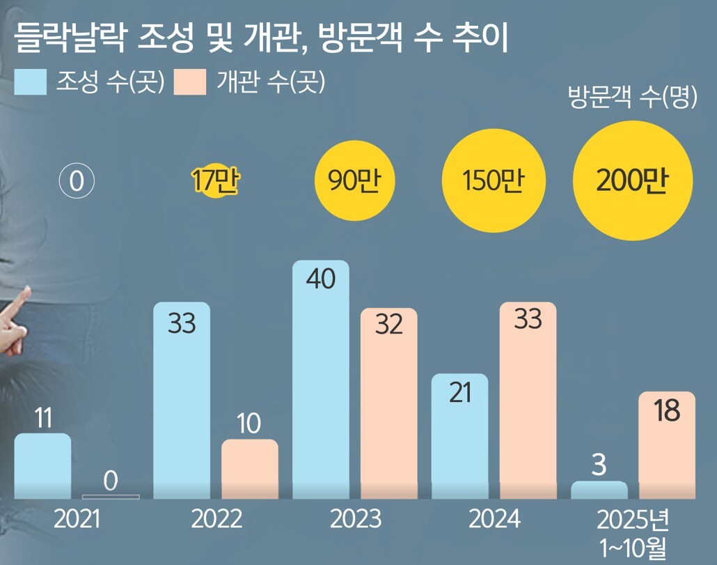 부산시가 2022년 처음 문을 연 어린이복합문화공간 ‘들락날락’을 찾은 방문자가 200만명을 돌파했다. 개관 첫해 17만명이던 방문객이 2023년 90만명, 지난해 150만명에 이어 올해는 지난 10월 말 기준 200만명을 훌쩍 넘어섰다. ‘들락날락’은 15분 생활권 내 아동친화적 도서관을 비롯한 디지털 콘텐츠 체험·학습, 영어 학습, 문화·예술·디지털 교육을 융합한 부산만의 놀이형 학습공간이다. 시는 더 좋은 서비스 제공을 위해 들락날락 정책 소통시간을 마련했다.