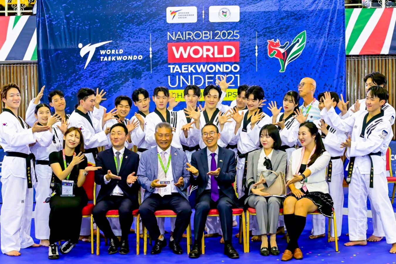 싸울아비 단원들이 지난 3일 케냐 수도 나이로비에서 열린 ‘세계태권도 U-21 챔피언십’ 개막식에서 시범 공연을 펼친 뒤 기념 촬영하고 있다. 전주대 제공 이숙경 전주대 태권도학과 교수는 “싸울아비는 전북 태권도 스포츠 외교 홍보단으로서 충분한 가능성을 입증했다”며 “앞으로도 세계 무대를 향해 K-태권도의 가치를 전파할 계획”이라고 말했다. 전주=김동욱 기자 kdw7636@segye.com