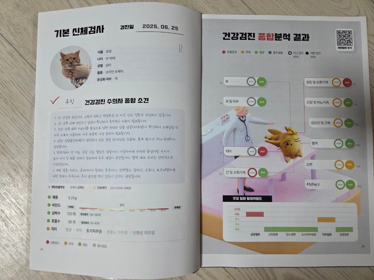 펫팅 건강검진 결과 리포트. 박재림 기자 맞춤형 검진 리포트도 펫팅의 자부심이다. 검진 결과와 담당 수의사의 견해를 반려인이 이해하기 쉽게 전하는 것은 물론이고 향후 반려동물을 어떤 식으로 케어를 해야 하는지도 알려준다. 협업 수의사진에 구하는 자문과 회사 소속 수의사의 최종 검수를 통해 전문성을 확보했다.