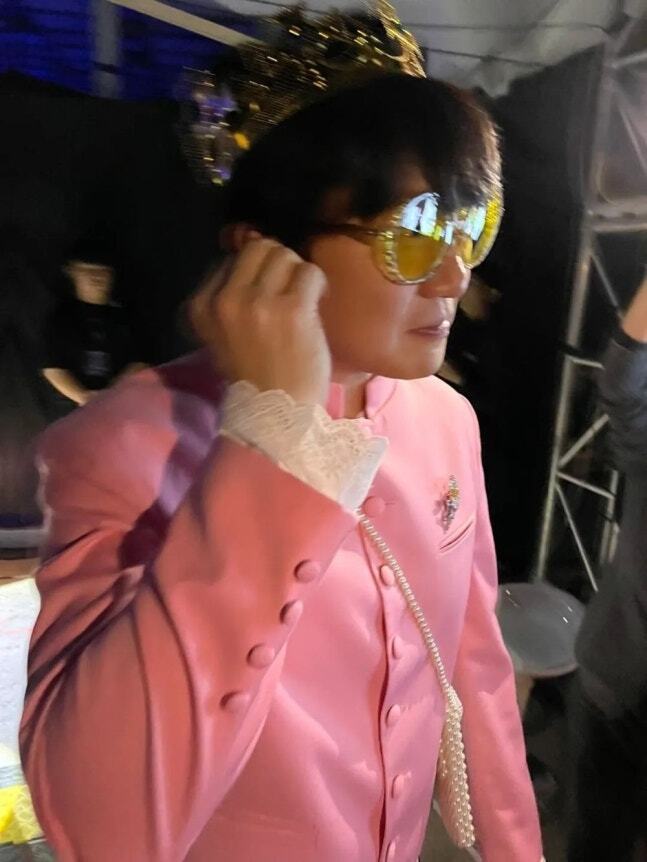 공개된 사진에는 성시경이 지난해 'MAMA Awards(마마 어워즈)'에서 지드래곤이 선보인 'POWER'의 핑크빛 무대의상을 입고 무대를 준비하는 모습이 담겼다.