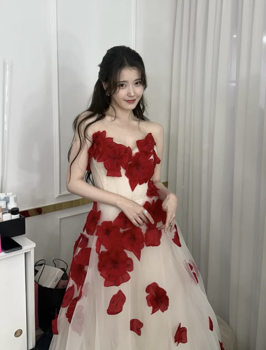 사진 = 아이유 SNS 계정 공개된 사진 속 아이유는 피부 톤과 자연스럽게 어우러진 바탕에 붉은 리본 장식이 화려하게 달린 드레스를 입고 고혹적인 매력을 한껏 뽐냈다. 깊게 파인 네크리스와 오묘한 색감이 시선을 사로잡았으며, 섬세한 디테일이 우아함을 더했다. 이어 빨간 꽃 장식이 돋보이는 순백 드레스와 반묶음 헤어스타일을 완벽하게 소화하며 마치 살아있는 꽃처럼 눈부신 자태를 선보였다. 한편, 아이유는 지난 29일 서울 동대문디자인플라자(DDP) 아트홀 1관에서 열린 ‘2025 서울콘 에이판 스타 어워즈 with KS오토플랜 (2025 SEOULCON APAN STAR AWARDS with KS오토플랜)’에서 대상을 수상했다.