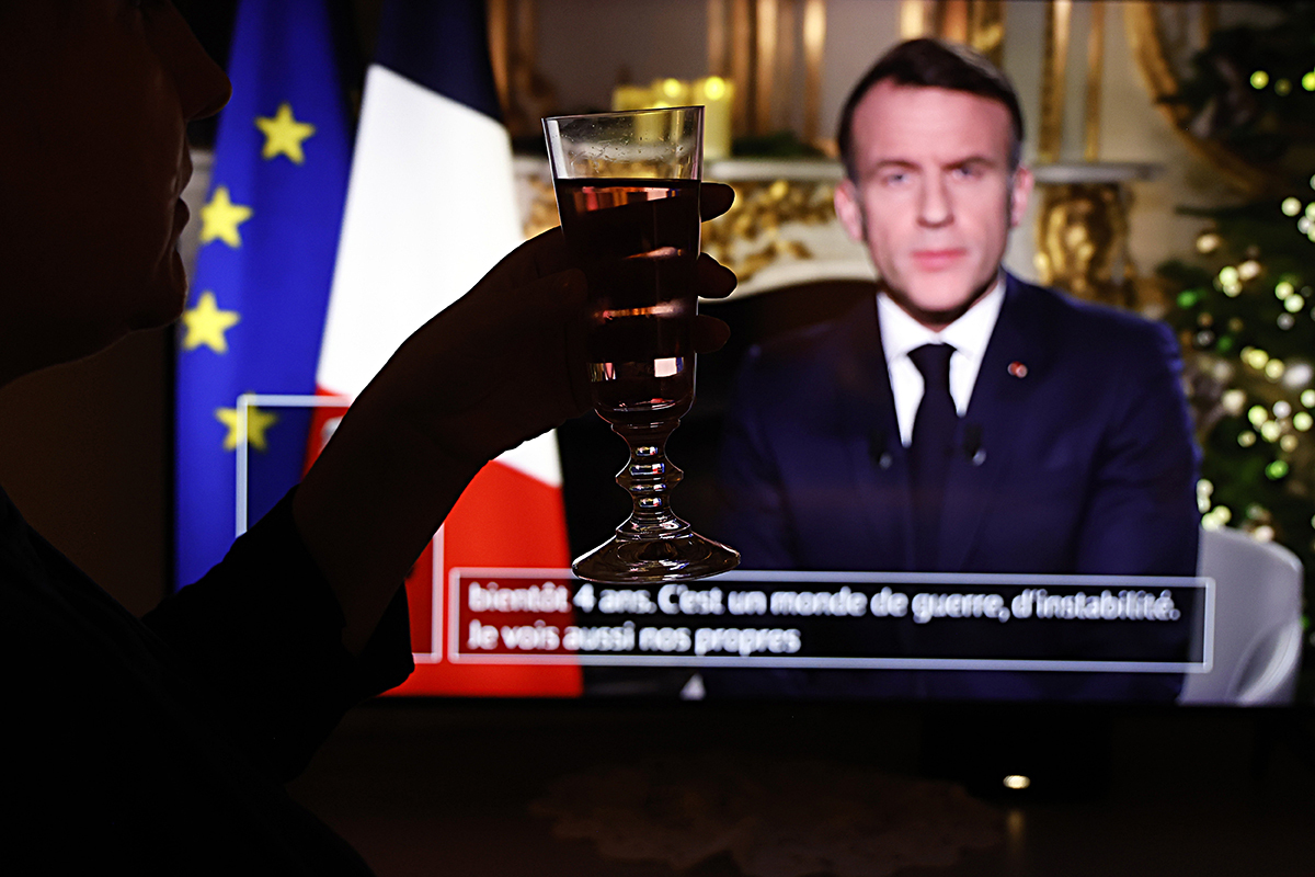 지난 12월 31일(현지시간) 에마뉘엘 마크롱 프랑스 대통령의 대국민 연설을 TV로 지켜보던 어느 시민이 술잔을 들어올리고 있다. 마치 최악의 정치적 위기에 놓인 마크롱을 위한 건배 제의처럼 보인다. EPA연합뉴스 프랑스는 그간 방만한 나라 살림으로 재정 적자가 폭증하자 이를 타개할 목적으로 긴축 예산안을 마련했다. 이는 어쩔 수 없이 국민의 복지 혜택 축소를 수반한다. 그러자 야당은 물론 노동조합과 시민단체 등도 강하게 반발하고 나섰다. 이날 연설에서 마크롱은 의회를 향해 “조속한 예산 확정이 필수적”이라며 정부 예산안 통과를 호소했다. 하지만 여소야대 의회가 마크롱의 간청을 쉽게 들어줄 가능성은 매우 낮아 보인다. 프랑스는 2024년 총선에서 여당이 패배함과 동시에 주요 정당들 중 아무도 단독으로 원내 과반 의석을 확보하지 못하면서 여소야대 정국이 됐다. 결국 의회 과반 지지를 얻지 못하는 소수당 정부가 위태위태하게 존립하며 정치 불안이 계속되고 있다.