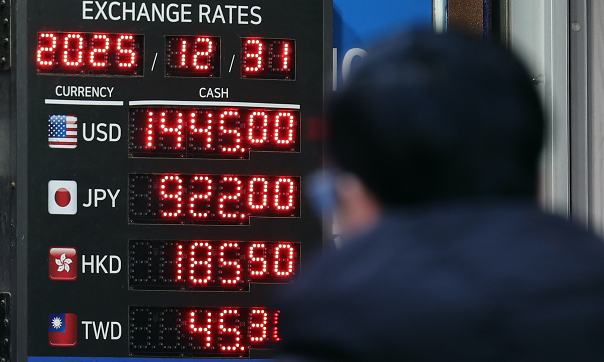지난 12월 31일 서울 중구 명동의 한 환전소 앞 전광판에 환율이 표시되고 있다. 뉴스1 세계일보가 주요 시중은행 환율 전문가에게 설문한 결과 올해 원·달러 환율 변동 전망치는 최저 1300원 중반에서 최고 1500원 초반으로 집계됐다. 연평균 환율은 1400원 이상으로 지난해(주간 거래 종가기준 1421.97원)와 비슷한 수준이 될 것이란 전망이 우세했다. 올해 환율 변동폭을 1410∼1500원대로 예상한 박형중 우리은행 이코노미스트는 “지난해 우리 증시가 최대 호황이었음에도 해외 투자가 늘어난 걸 보면 올해도 환율 불안정성이 만만치 않은 한 해가 될 것”이라고 했다. 중국의 거센 공세도 위협적이다. 한국경제인협회는 지난해 11월 “반도체와 전기·전자, 자동차 등 한국의 10대 수출품 경쟁력이 2030년이면 모두 중국에 밀릴 것”이란 조사 결과를 내놓은 바 있다.