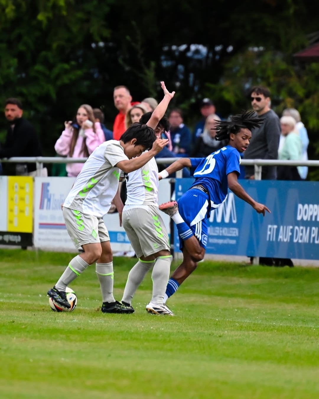 SV 베르더 브레멘 Ⅲ의 이건우가 경기 중 상대 선수와 볼경합을 하고 있다.