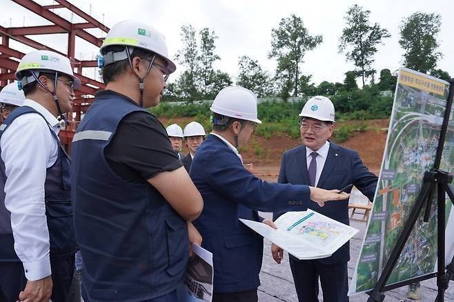 김용진 경기주택도시공사 사장(오른쪽)이 현장에서 업무보고를 받고 있다. GH 제공 경기도는 운영기관 공모를 진행한 이후 예비심사와 본심사를 거쳐 다음 달 10일 선정 결과를 발표한다. 참여를 원하는 기관은 매입임대주택의 근린생활시설과 공동이용시설을 중심으로 돌봄, 창업지원, 자립지원, 체육시설 등과 관련해 자유롭게 운영 주제를 제안하면 된다. 도 산하 주택·건설사업의 주체인 GH는 민선 8기 들어 이처럼 인구·사회구조·주택생애주기의 변화를 고려해 공공·임대주택의 공동시설을 재구성하는 사업을 진행 중이다. ‘적금 주택’이라 불리는 지분적립형 주택 시범사업을 광교신도시 A17블록에서 추진하고 3기 하남교산 신도시의 냉난방비 제로 아파트, 용인영덕의 모듈러 주택 등 다양한 시도 역시 이어가고 있다.