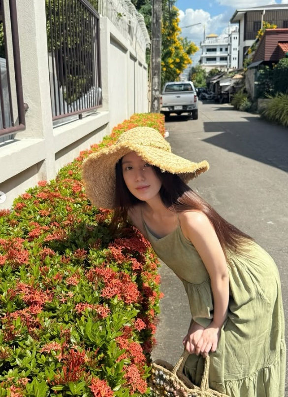 선글라스를 착용한 채 음료를 들고 서 있는 컷에서는 도심 속 휴식을 즐기는 자유로운 무드가, 꽃과 나무 사이에 앉아 있는 사진에서는 한층 부드럽고 차분한 감성이 전해진다. 카페에서 커피잔을 들고 카메라를 바라보는 장면에서는 담백한 미소로 편안한 일상의 순간을 공유했다.