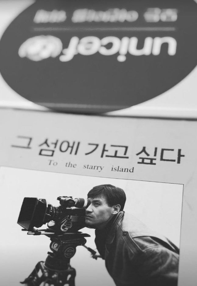 사진은 고인이 주연한 영화 ‘그 섬에 가고 싶다’(감독 박광수)의 사진집으로, 흑백 사진 속 안성기는 카메라를 응시하고 있다.