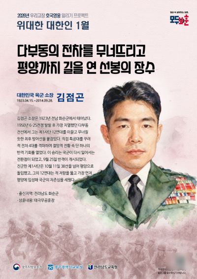 광주지방보훈청은 올해 1월 '우리 고장 위대한 대한인'으로 김점곤 육군 소장을 선정했다고 5일 밝혔다.