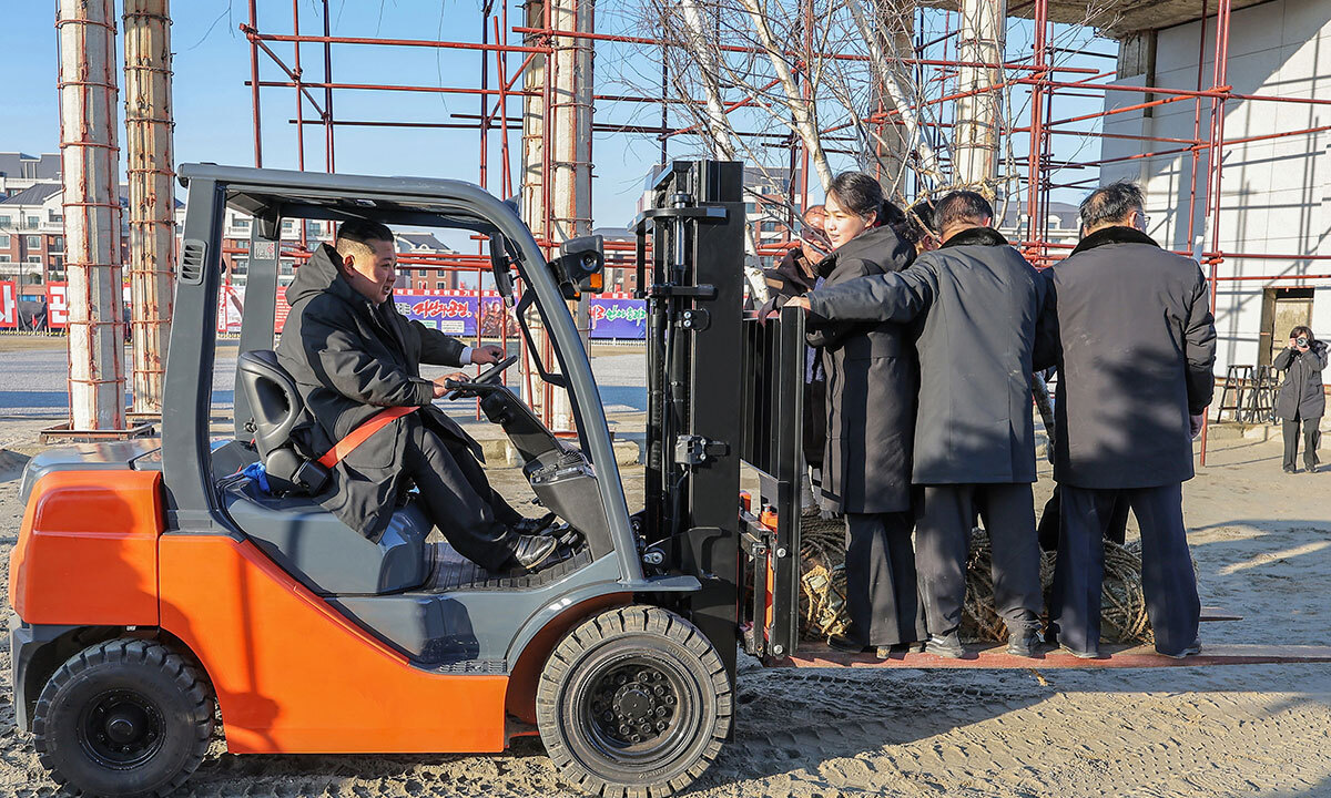 김정은 북한 국무위원장이 딸 주애와 함께 러시아 파평군 추모기념관 건설 현장에서 삽으로 땅을 파고 직접 지게차를 모는 모습이 공개됐다.