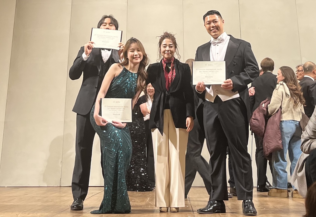 김봉미 지휘자 겸 아슬리코 아시아대표(왼쪽에서 세번째)와 수상자들 이로써 아슬리코 아시아(대표 김봉미)는 3년 연속 우승자를 배출했으며 지난 2024년 첫 우승자였던 박준혁은 유럽 뿐 아니라 남미 등 전 세계 무대에서 폭넓게 활동하고 있다. 김봉미 아슬리코 아시아 콩쿠르 대표는 “한국 젊은 음악가들에 대한 이탈리아 전문가들의 평가가 날로 높아지고 있다”며 “경륜이 쌓이면서 우리 성악가들의 활동무대가 점점 넓어지고 있다”고 말했다. 아슬리코 아시아 콩쿠르는 베하필하모닉오케스트라와 최첨단 IT 글로벌 기업 비에이치와 오알켐이 주최, 후원하고 있으며 우리 입상자들이 출연하는 오페라를 곧 국내 무대에 올릴 계획이다.