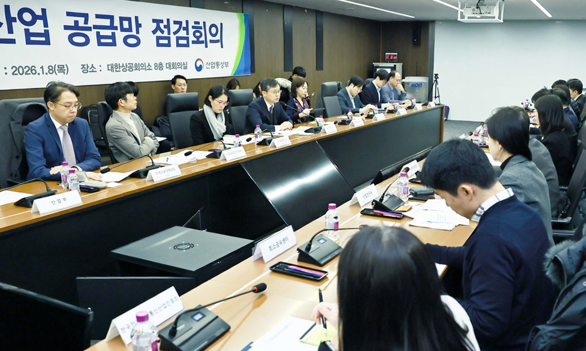 윤창현 산업통상부 산업자원안보실장 직무대리가 8일 서울 중구 대한상공회의소 대회의실에서 '산업 공급망 점검회의'를 주재하고 있다. 산업통상부 제공 중국이 규제 품목을 명확히 공개하지 않은 채 ‘모호한 전술’을 펴는 가운데 한국도 촉각을 곤두세우고 있다. 산업통상부가 이날 진행한 ‘산업 공급망 점검회의’에서는 ‘중국(원소재)→일본(가공소재)→한국(완제품)’으로 이어지는 공급망 구조상 중국의 이번 ‘이중용도 품목 수출 통제 강화’ 조치로 일본에서 생산 차질이 빚어질 경우 수입과 산업 전반에도 영향이 미칠 것이라는 업계 및 전문가들의 우려가 나왔다. 한국배터리산업협회 관계자는 통화에서 “공급망 자체를 중국에 의존하고 있기 때문에 일본이 차지하는 비중은 그리 크지 않다”면서도 “2벤더, 3벤더로 내려갔을 때 생기는 이슈는 기업들이 같이 대응하자는 협의가 된 상태”고 말했다.