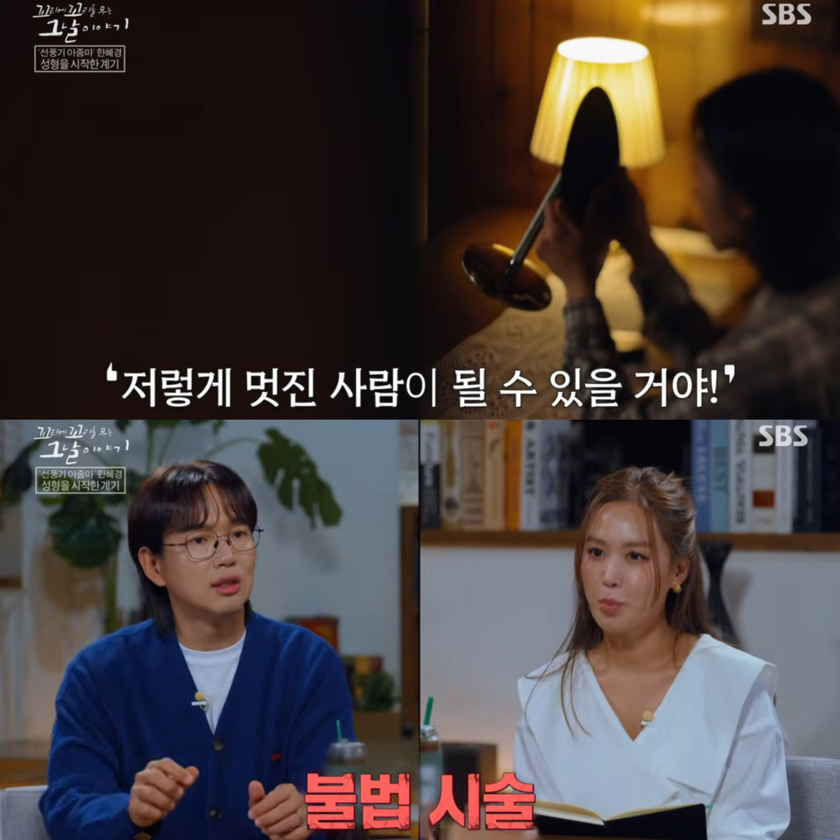 불법 성형 시술에 발을 들이게 된 한혜경 씨. 유튜브 채널 'SBS STORY' 영상 캡처 그러나 한혜경 씨는 성형외과가 아닌 불법 시술을 찾았다. 1980년대는 불법 성형이 만연했던 시대였다. 그는 시술을 반복하는 사이에 성형중독에 빠졌고, 어느새 얼굴이 흉하게 변하고 말았다. 결국 빈털터리가 된 채 귀국해 가족들은 충격에 빠지고 말았다.