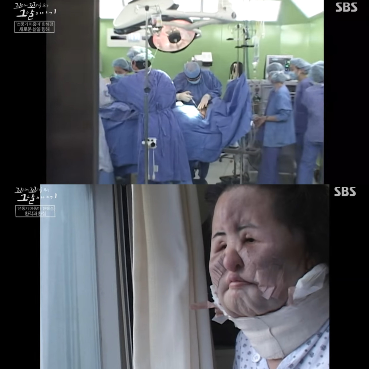 수술은 2년 9개월 동안 15차례에 걸쳐 진행됐다. 얼굴에서 제거된 이물질의 무게만 4kg이었다. SBS 제작진의 도움으로 정신과 치료도 병행할 수 있었다.