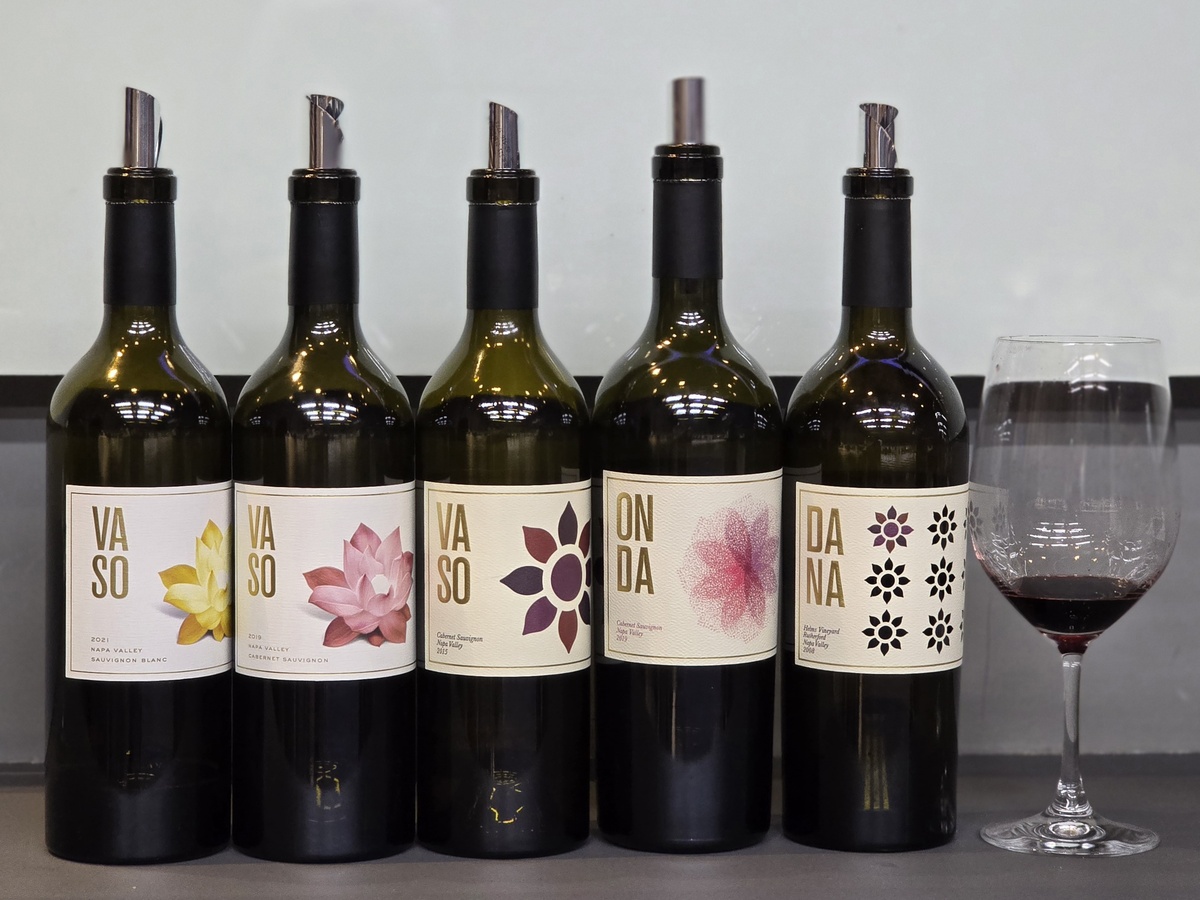 바소, 온다, 다나. 최현태 기자 ◆다나 싱글빈야드 다나(Dana)는 ‘관대한 정신’을 뜻하는 산스크리트어. 타협 없는 품질 기준을 지키면서 최소한의 개입을 통해 자연이 지닌 관대함을 존중하고 구현한다는 의미를 와이너리 이름에 담았습니다. 다나 레이블에 그려진 12송이 연꽃은 포도나무의 생애 주기를 구성하는 12개월과 12지 동물을 의미합니다. 다나 와인은 4개 싱글 빈야드를 중심으로 다나, 바소(VASO), 온다(ONDA) 와인을 생산합니다.