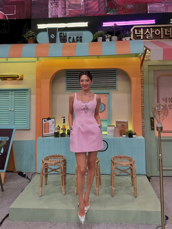 공개된 사진 속 효연은 tvN ‘놀라운 토요일’ 세트장을 배경으로 사랑스러운 핑크색 미니 원피스를 입고 포즈를 취하고 있다.