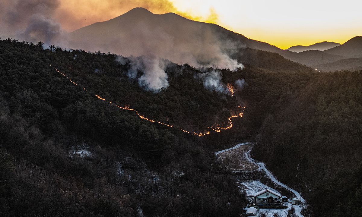 경북 의성군에서는 강풍 속에 산불이 발생해 주민 대피령까지 내려졌다. 산림 당국에 따르면 전날 오후 3시14분쯤 “의성군 의성읍 비봉리의 해발 150m 야산 정상에서 산불이 났다”는 신고가 접수됐다. 이 지역에는 오전부터 강풍주의보가 발령된 상태였다. 초속 6m가 넘는 강풍을 타고 산불이 확산하자 관계 당국은 소방 대응 2단계에 이어 국가 소방동원령을 발령했다. 강한 바람 때문에 헬기 이륙이 어려워지면서 진화작업에 어려움을 겪었다. 산불이 안동시 길안면 일대로 확산하자 군은 긴급재난문자로 산불 상황을 알리며 주민 343명에게 ‘의성체육관으로 대피하라’고 안내했다. 다행히 오후 들어 강한 눈발이 날리면서 불길이 약화돼 산불 발생 3시간15분여 만인 오후 6시30분쯤 주불을 진화했다. 산림 당국에 따르면 이번 산불로 인한 피해 면적은 약 93㏊로 집계됐다. 다행히 인명 피해는 없는 것으로 파악됐다.